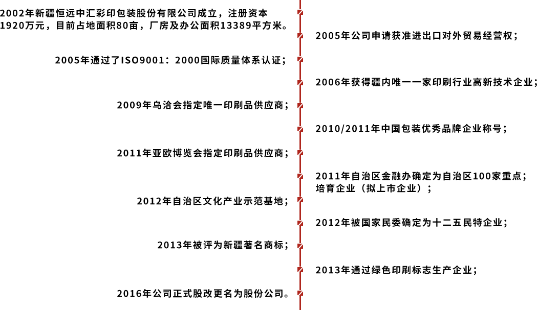 新疆恒遠(yuǎn)中匯彩印包裝股份有限公司成立于2002年7月,位于新疆烏魯木齊市高新區(qū)(新市區(qū))北工業(yè)園區(qū),為客戶提供品牌規(guī)劃、設(shè)計(jì)、印刷、包裝物制作的技術(shù)集成公司,整體綜合實(shí)力位居新疆包裝行業(yè)前列。目前公司占地約80.08畝,已建設(shè)完成接近2萬平方米的辦公樓、生產(chǎn)廠房、庫房及宿舍等基本設(shè)施。公司依托廣州深厚的印刷包裝技術(shù),引進(jìn)德國、意大利、瑞士等自動(dòng)化高效設(shè)備幾十臺(tái),工序配置齊全,自主設(shè)計(jì)研發(fā)項(xiàng)目獲得十幾項(xiàng)專利,使企業(yè)更具有較強(qiáng)市場(chǎng)競(jìng)爭力,為優(yōu)質(zhì)企業(yè)提供品質(zhì)優(yōu)良的包裝,讓新疆產(chǎn)品走出新疆,走向國內(nèi)、國際市場(chǎng)。目前為止公司擁有西北地區(qū)的環(huán)保水印印刷機(jī),逐步形成擴(kuò)大了公司的龍頭企業(yè)的區(qū)域范圍。2017年積極響應(yīng)國家產(chǎn)業(yè)援疆戰(zhàn)略,新設(shè)阿克蘇子公司,集合世界先進(jìn)的包裝技術(shù),服務(wù)南疆特色林果業(yè),輻射南疆(和田、喀什、庫爾勒等)各區(qū)域;